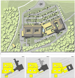 Il nucleo situato a nord utilizza i volumi dell'attuale ospedale, mentre nel nucleo a sud , ubicato in un nuovo volume edilizio, vi saranno i servizi sanitari diurni e per acuti.